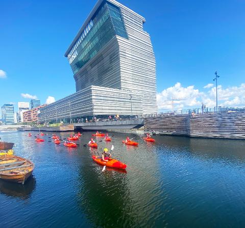 - You can leave your belongings in our vehicle, which will be waiting for you where the kayak tour ends at Sukkerbiten in Bjørvika, close to the Oslo Opera House. There are public toilets at the end of the trip at either Munch Museum or the Oslo Opera House, where you can also get changed.